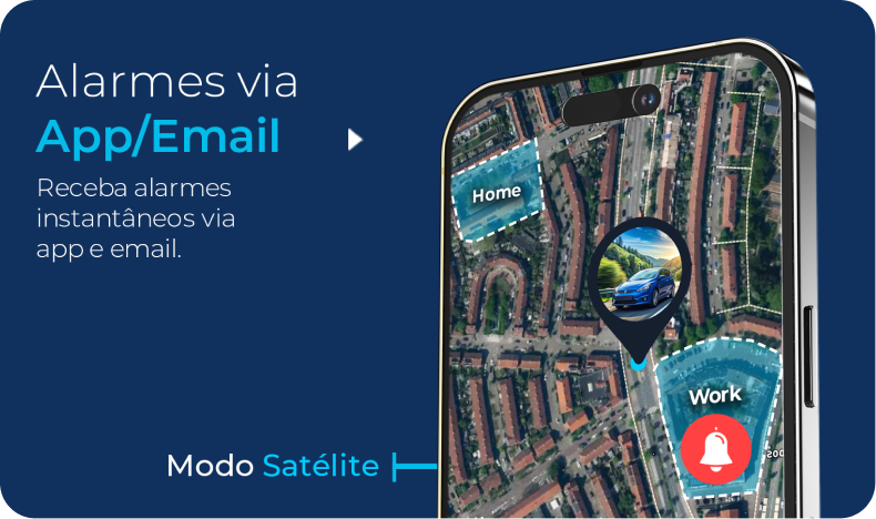 Segurança através de alarmes configurados no rastreador GPS. Notificação imediata via mensagem push quando o alarme for acionado. Alerta em tempo real.